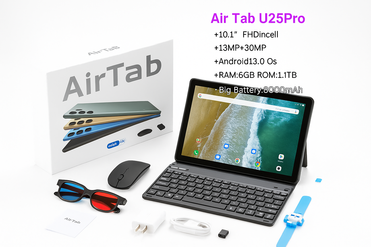 The AirTab U25 Pro is a high-performance tablet designed to blend productivity, entertainment, and portability. With its large storage, fast RAM, crisp display, and long-lasting battery, it’s built to keep up with modern demands—whether you’re streaming, working, studying, or gaming.
