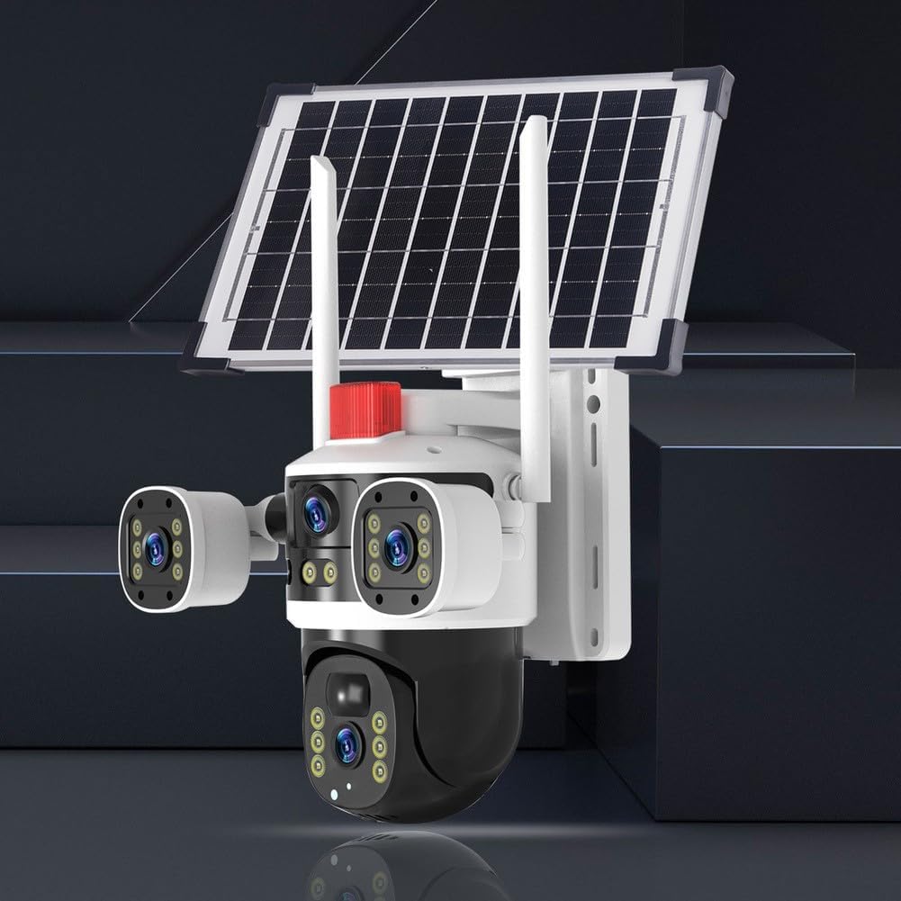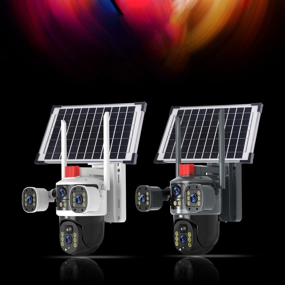 Feegow Dual Cameras Solar Security Cameras Outdoor WiFi, 2K HD Home Security Camera, 360° View, IP66 Waterproof, PIR Motion Detection for Home and Store Camera