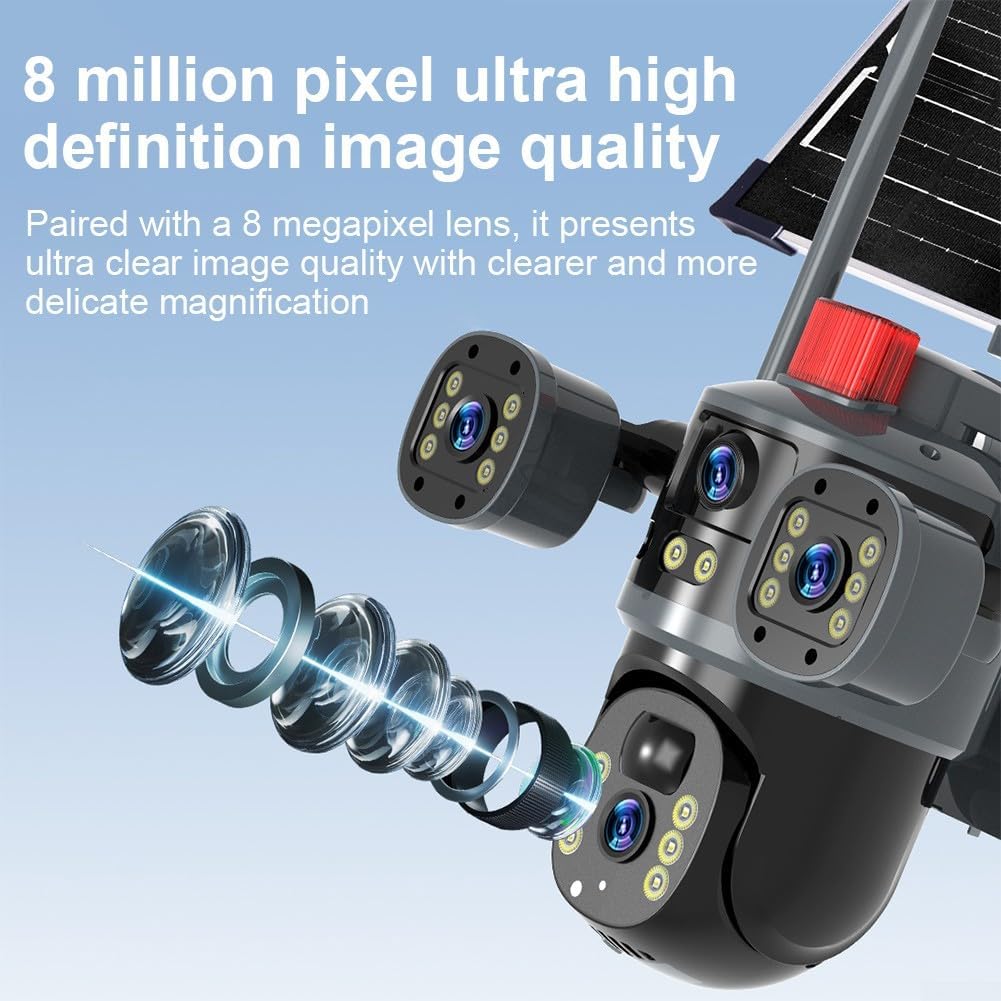 [SOLAR-POWERED SECURITY]: This outdoor camera features a 6W solar panel and an 8000mAh built-in battery, providing continuous operation in remote locations without direct power access. It is perfect for long-term surveillance with minimal maintenance.