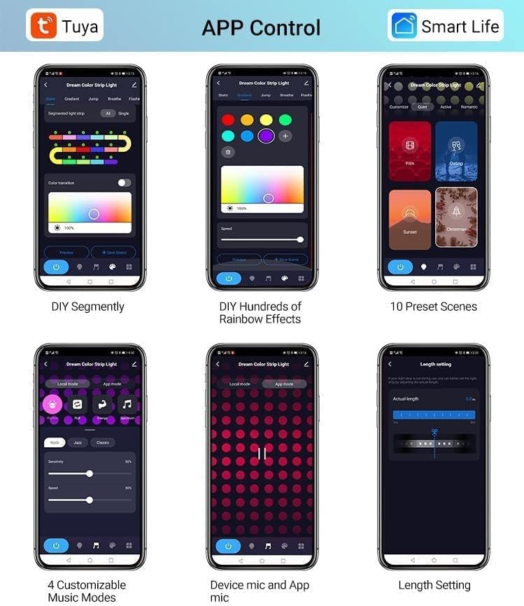 - 🌈【Sync with Music】- Neon light strip with built-in microphone to detect ambient noise, music and gaming audio, the neon LED strip lights up accordingly and adjusts effects, reacts in real time, enjoy moments fantastic. Increase your party, play time with LED strip lights, add more fun to your bedside, wall, TV backlit decor. "